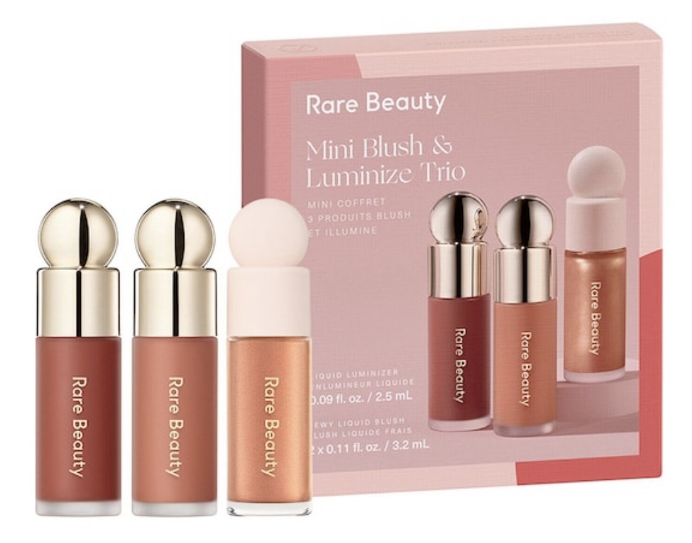 Un estuche de regalo ideal de productos esenciales luminosos, que incluye miniaturas de nuestro Blush liquide Soft Pinch y del Iluminador líquido Positive Light.
